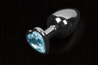 Пикантные Штучки Большая серебристая анальная пробка с кристаллом в виде сердечка 8,5Х4 см, голубой
