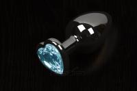 Пикантные Штучки, Большая графитовая анальная пробка с кристаллом в виде сердечка – 8,5Х4 см, голубой